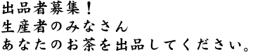 | ネットで売られているお茶は意外に高い!お店で売られているお茶も、もっと安く出来るはず!そんな思いからこの試みは始まりました。生産者とお客様を最短で結べば出来るはず!荒茶の市場価格に比べ何倍にもなる小売価格。仕上げの実質コストは僅かなのに、売買を重ねる産業構造で小売価格は高くなります。だから生産者が手軽に出品できる販売システムを作りました。おいしいお茶を手軽に楽しんでください。 | ||||